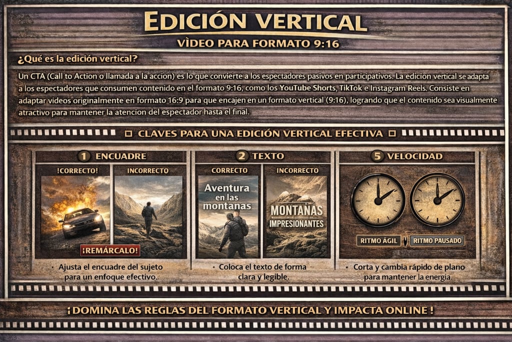 Retención de audiencia: El formato 9:16 obliga a aplicar técnicas de retención desde el primer fotograma. Si el corte es lento, la gente se va.